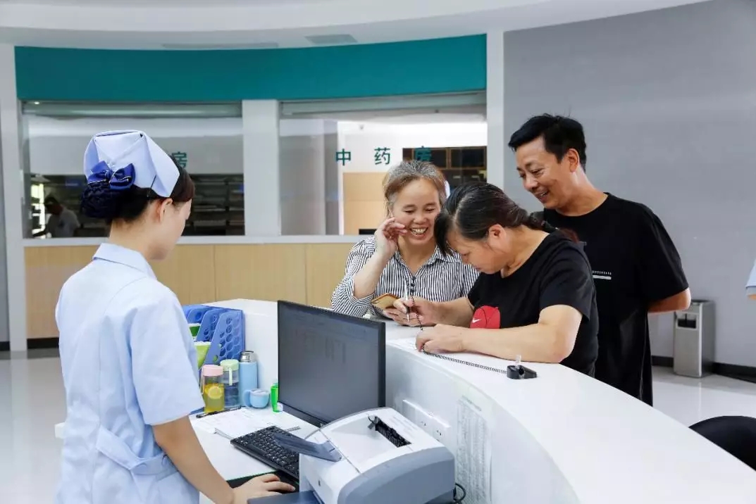 前来就诊的人群在导诊台填表建档